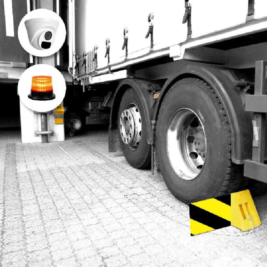 System kamer AI monitoruje, czy klin zabezpieczający jest prawidłowo umieszczony pod kołem. Jeśli klin zostanie przesunięty, usunięty lub stanie się niewidoczny dla kamery – natychmiast uruchamiany jest alarm świetlny i dźwiękowy wewnątrz magazynu. Operatorzy otrzymują jasny sygnał zagrożenia jeszcze zanim dojdzie do niebezpiecznej sytuacji.
